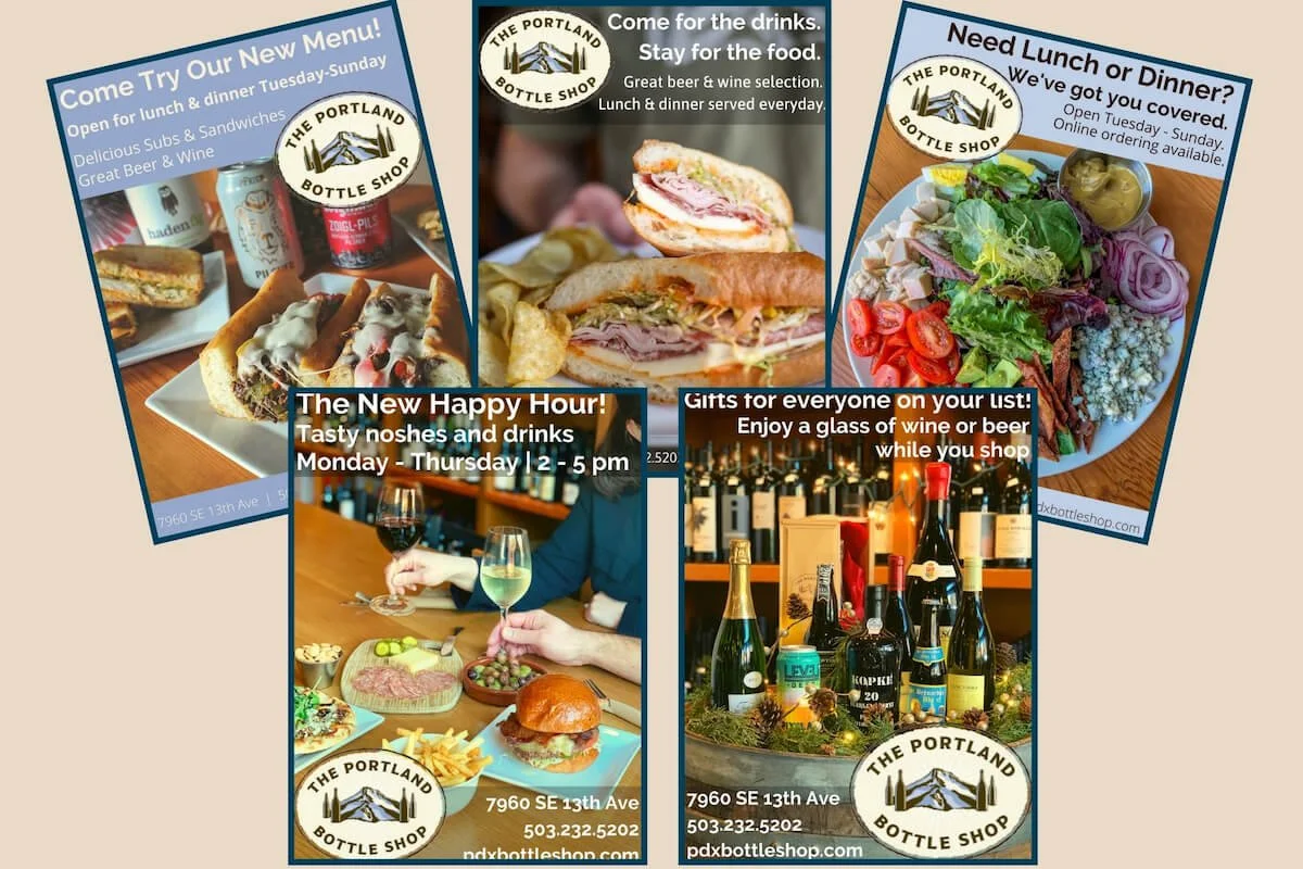 Examples of the Portland Bottle Shop’s printed ads after establishing a marketing and communication strategy.